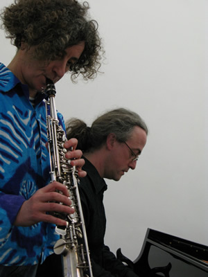 CHEFA ALONSO: A Albert lo conocí porque él también estaba escribiendo una tesis doctoral sobre la improvisación en Marburg, Alemania. Aunque en su caso era desde el punto de vista de su enseñanza en escuelas de músicas, es decir, la enseñanza de la improvisación a niños y jovenes. Actualmente es doctor en improvisación y está trabajando ya en una Universidad cerca de Colonia. Nos intercambiamos material y decidimos probar a tocar juntos. Creo que nos entendimos tanto personal como musicalmente desde el primer momento. Recientemente se ha comprado un clavicordio, con lo cual tenemos un dúo bastante variado combinando el piano, el clavicordio, el saxo soprano y la percusión. En la última grabación que tenemos figuran ya los cuatro instrumentos. En