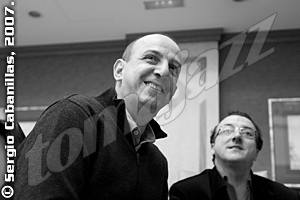 También quería hablar del proceso técnico de la grabación, el estudio, la mezcla, que para mí es indisociable del proceso musical, del proceso previo y de la relación con Ramón y Barry, es decir, la relación que tengo con Ferrán Conangla, que es el técnico que me ha asistido en Aurora. Es un técnico con el que trabajo desde hace años en distintos proyectos y con diferentes acompañantes. Conoce muy bien mi sensibilidad, mis historias y sabe traducir estas cosas que explico. Él lo sabe aplicar al proceso de grabación, a la mezcla, a la edición, al mastering. Él es la única persona que podía hacer este trabajo. Yo creo que ha realizado una labor extraordinaria. A nivel técnico no ha sido fácil, porque para empezar partimos de tres grabaciones en tres auditorios diferentes, con tres pianos diferentes, en tres fechas diferentes. Para que, con tres pianos diferentes, suene un mismo piano de un modo consistente a lo largo del disco tienes que tener un técnico muy bueno que sepa hacer eso. Mantener el clima, los colores, el espacio, todo esto a lo largo del disco y tema a tema... sólo lo podía hacer con una persona como él. Los conceptos básicos que trabajé con él fueron los de la claridad: yo quería un sonido muy claro y muy definido, transparente, cristalino... que se entendiera todo, que se oyera todo. No quería ningún "marrullerismo"... un reverb excesivo. Las ecualizaciones tenían que ser siempre transparentes, que no se notase que hay nada. Como si estuviera el público ahí. Como si los músicos estuvieran en tu casa. Ferrán sabía como afrontar la grabación: con qué micros, la manera en que lo iba a grabar y cómo mezclarlo. Hemos hecho muchas mezclas y finalmente no se nota nada. No siempre, pero hay algunos temas que tienen mucha mezcla detrás. Temas que mezclé una vez, los mezclé otra vez... al cabo de tres meses volví a mezclarlos... cambiamos el concepto, volvimos otra vez, había demasiadas cosas, las quitamos… ha sido un proceso muy largo técnicamente. Por eso ha tardado tanto tiempo desde que se grabó hasta que ha salido. Durante este tiempo yo estaba ahí, yendo al estudio casi cada mes. "Vamos a hacer este tema otra vez". Quita esto, pon lo otro, probamos de esta manera, probamos de la otra. Y así una y otra vez. En este sentido Ferrán es una persona muy encantadora, muy paciente y muy comprometida con lo que estábamos haciendo. Siempre me daba soluciones para todos mis requerimientos. En este sentido yo me siento muy afortunado, porque creo que la grabación es exquisita. El sonido del disco es un lujo y esto sin Ferrán no sería así. Esto es algo que se ha reconocido en todas partes, tanto aquí como fuera. Mucha gente ha dicho que este es un disco que por la calidad del sonido podría estar en ECM o en cualquier sello exquisito. Eso es algo que a mí me halaga, porque nos ha costado mucho tener ese sonido. Ha sido muy difícil. Ha sido un proceso que sin otra persona no habría sido posible. No habría sido capaz de llegar a esos niveles de sutileza y de claridad que hemos logrado. Quería mencionar a Ferrán porque es un genio, sobre todo de la mezcla. La grabación no tiene tanto misterio, porque al final es tenerla bien preparada. Pero la mezcla… Ferrán oye lo que nadie puede oír. Ahí es donde él es excelente.
