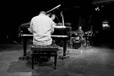 ABE RÁBADE: Sí, en eso estamos. Claro que estamos hablando de la esfera ideal que luego ha de tener su correspondencia con el mundo real, y el mundo real ahora mismo está muy difícil para cualquier propuesta, estés empezando, estés elaborando o estés consagrado, da exactamente igual, las cosas están como están. Hay que tener claro que en lo que puedas aprovechar las oportunidades que tú tengas en directo, sean muchas, pocas o normales, tomando cada concierto como una oportunidad. Es una pena, porque con pocos directos tienes menos continuidad, y vas a tener menos opciones y menos rodaje. En el caso de mi trío, mi batería [Bruno Pedroso] vive en Lisboa, mi contrabajista [Pablo Martín Caminero] en Madrid y yo en Santiago de Compostela. Es un triángulo curioso, y nos lo tomamos de esta forma. Hace 15 días tocamos en Ciudad Real, en el UniversiJazz, el día 1 de diciembre en Bilbao. Es como un trabajo itinerante, y las decisiones en el grupo se toman antes, durante y después de los conciertos, y en ese sentido es un ejercicio de sinceridad de los tres. Afortunadamente cuento con dos personas que se han implicado personal y artísticamente en el proyecto de una forma que no se puede pagar, es de las cosas que más valoro. No se limitan a tocar notas, hay una intención clara de involucrarse emocionalmente en el proyecto, y al final es lo que uno desea y por eso estoy muy orgulloso de poder presentar un disco que además de notas contiene esa “otra cosa” que esperemos que, de algún modo, se transmita a la gente que lo escuche.