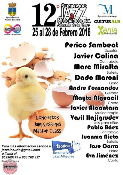 Entre el 25 y el 28 de febrero de 2016 tendrá lugar en Alhaurín de la Torre (Málaga) el 12º Seminario Jazz & Música Moderna. Tendrán lugar conciertos, jam sessions y clases magistrales con la participación, entre otros, de Perico Sambeat, Javier Colina, Marc Miralta, Javier Alcántara, Dado Moroni, Andre Fernandes…