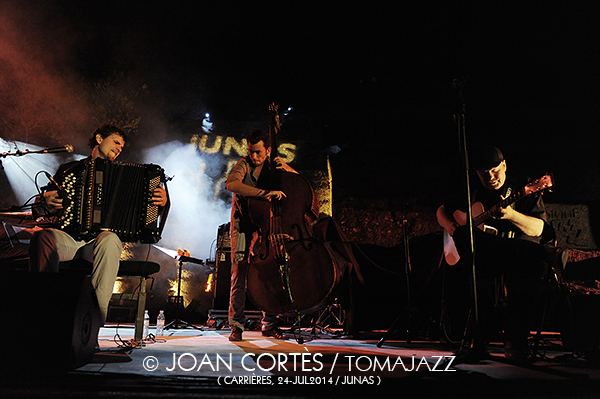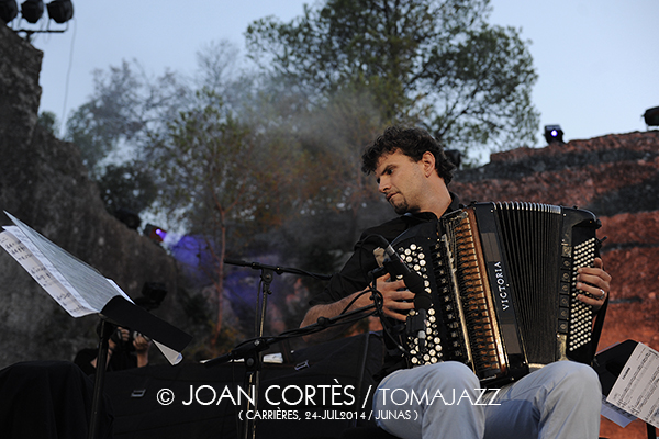 Posteriormente aparecieron en escena los dos jóvenes músicos galos. El contrabajista Simon Tailleu, intérprete dinámico, de sonido redondo, que engarzó a la perfección las distintas concepciones y sonoridades de sus compañeros. El tercer vértice de la propuesta fue el acordeonista, fehacientemente promiscuo, Vincent Peirani. Qué decir de él, a estas alturas que no hayamos comentado en el último año, pues, a modo de ejemplo, poder escucharlo en un dueto, que no en duelo, con Richard Galliano, o con Antonello Salis, y puestos porqué no los tres juntos como en aquel Vignola ReunionTtrio de 1991 (Ermitage, 1996) con Marcel Azzola, Galliano y Salis