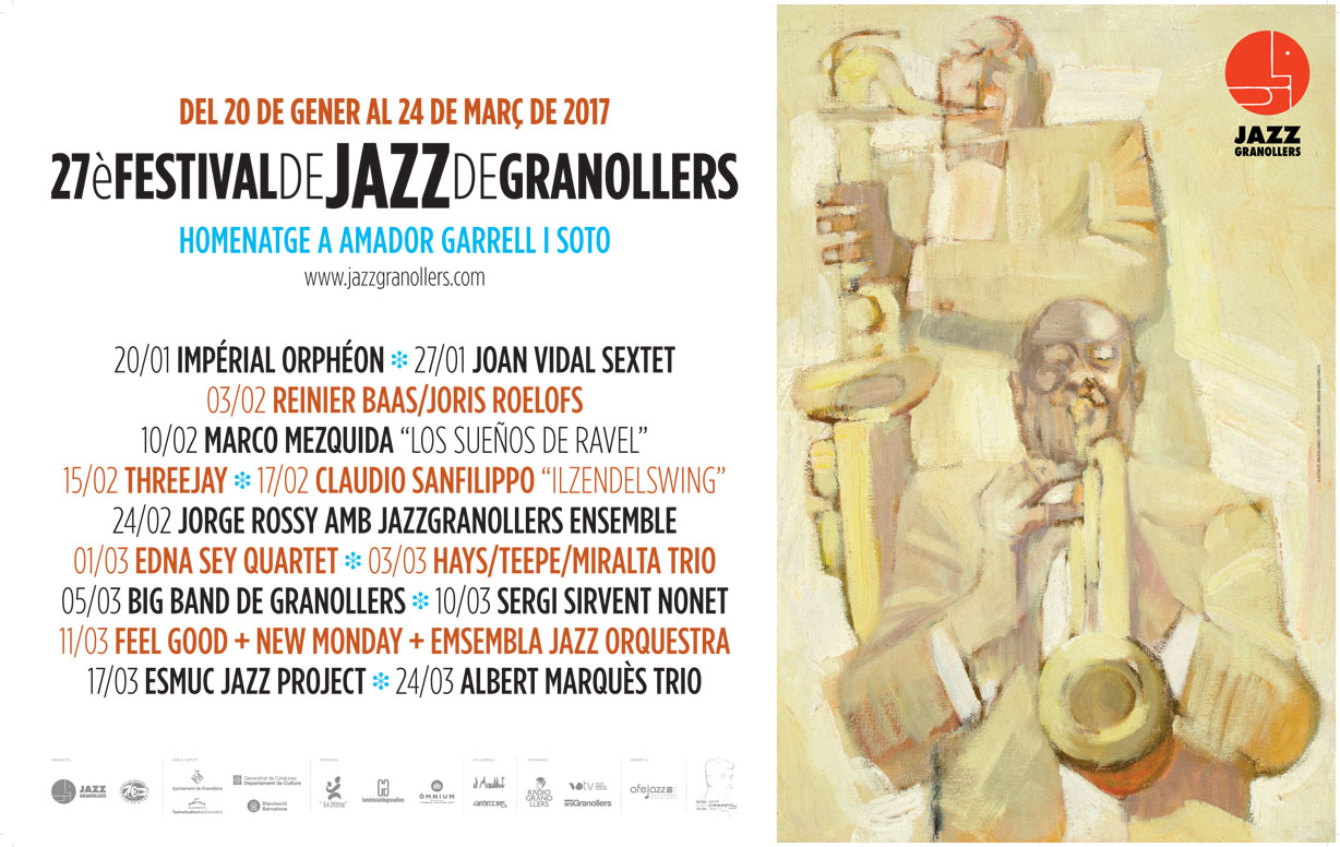 Entre el 20 de enero y el 24 de marzo de 2017 tendrá lugar el 27è Festival de Jazz de Granollers. El concierto inaugural lo protagonizará el grupo francés Impérial Orphéon, y finalizará con la actuación de Albert Marquès feat. Zack O’Farrill “Live in the South Bronx”. Además actuarán Joan Vidal Sextet “Revisiting Zarathustra”, Reinier Baas ” Joan Bretcha Guitar Series”, Marco Mezquida “Los sueños de Ravel”, Threejay “Our voint of piew”, Claudio Sanfilippo “Ilzendelswing”, Jorge Rossy amb JazzGranollers Ensemble, Edna Sey Quartet, Hays / Teepe / Miralta Trio, Big Band de Granollers “AfroNora”, Sergi Sirvent Nonet “Catalexi”, EmSembla Jazz Orchestra + Combos y ESMUC Jazz Project “Univers Coleman”. Toda la información en http://jazzgranollers.com/?cat=31