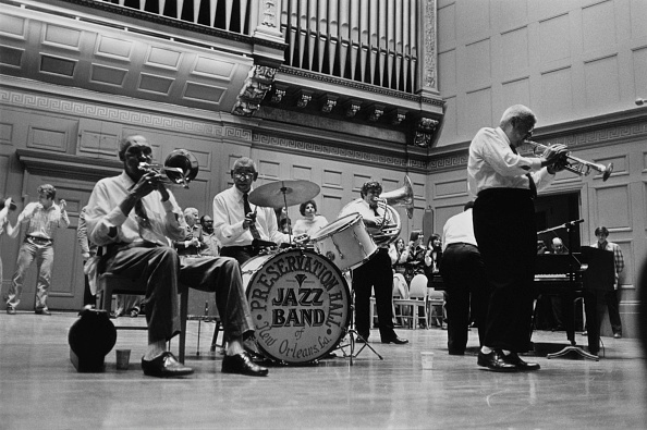 Sobre el escenario: Preservation Hall Jazz Band. 1976. Fotografía: © Barbara Alper.