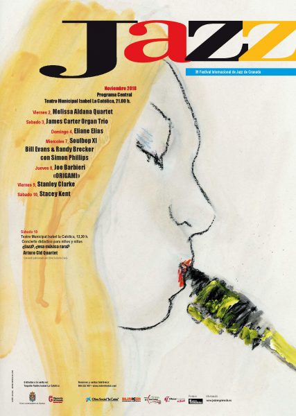 Entre el 2 y el 10 de noviembre de 2018 tendrá lugar el 39 Festival Internacional de Jazz de Granada con conciertos en el Teatro Municipal Isabel La Católica a las 21:00. actuarán Melissa Aldana Quartet (2), James Carter Organ Trio (3), Eliane Elias (4), Soulbop XL con Bill Evans, Randy Brecker y Simon Phillips (7), Joe Barbieri (8), Stanley Clarke (9), y Stacey Kent (10). Toda la información en http://www.jazzengranada.es/