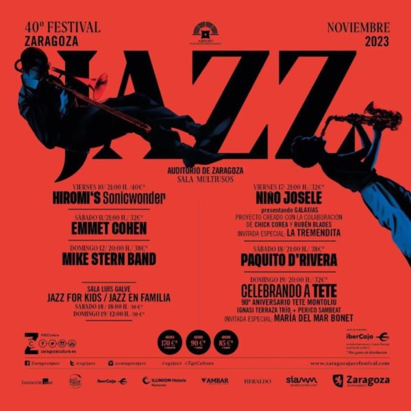 Entre el 10 y el 19 de noviembre de 2023 tendrá lugar en Zaragoza, el 40º Zaragoza Jazz Festival 2023.