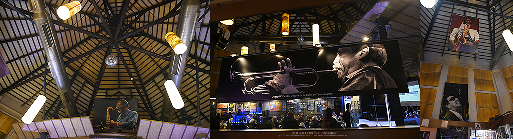 La Nova Jazz Cava (NJC) es un antiguo silo reconvertido en una pequeña catedral jazzística, pequeña por las medidas aunque inversamente proporcional a lo que se ha podido ver y escuchar en su interior, como nos recuerda la decoración de sus paredes, los carteles de las ediciones anteriores del festival, programas firmados, objetos varios y, como no, diversas fotografías, entre ellas la de Joe Henderson presidiendo, cual imagen religiosa, la parte superior del escenario, confrontada a otra del mismo saxofonista encima de la foto de Tete Montoliu y entre las tres, en la pared de cristal transparente, una de gran formato del trompetista Josep Ma Farrás, todas de Miquel Querol, fotógrafo oficial de la cava, que desgraciadamente falleció hace un año y medio. Tal como nos recordó el carismático director artístico, Valentí Grau, en este 2022 se cumplen 25 años de los fallecimientos de Lou Bennet y Tete Montoliu.