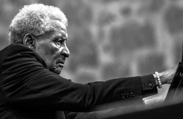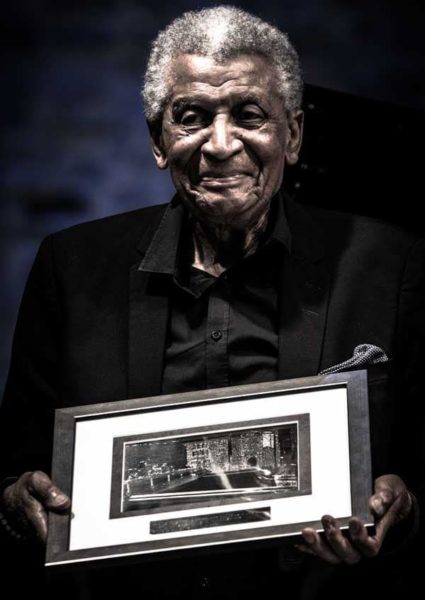 Con paso lento y ayudado por los dos músicos que le acompañaban y que son sus fieles compañeros en los últimos años, el saxofonista y flautista Cleave Guyton y el contrabajista y violonchelista Noah Jackson, que ya estuvieron con él en la anterior actuación de Abdullah en el Jazzaldia en 2021, con una figura invitada, el trompetista Terence Blanchart y una formación más numerosa, en este mismo escenario de la Trini. Esta vez la entrega del Premio Donostia del Festival se hizo por parte del director del Jazzaldia Miguel Martín con toda la Trinidad en pie aplaudiendo, en un homenaje más que merecido, a toda una trayectoria de un músico singular, imposible de etiquetar en estilos o tendencias, fiel a sí mismo y comprometido con las causas en su país natal. Abdullah Ibrahim se sentó en su piano y abordó un concierto al que quería dotar del carácter intimo que el escenario no podía ofrecerle, buscaba un sonido acústico que la Trini no puede dar por el ruido ambiental que tiene en su entorno, sin entrar en los extractores de “la Gastronómica” que son ya un clásico difícil de resolver. Lo cierto es que se veía molesto al músico al cual le sobraban focos y watios de amplificación. El concierto discurrió transmitiendo el profundo lirismo que caracteriza la música de Abdullah Ibrahim y aunque sus 88 años se van notando, el sonido envolvente, su fraseo ligero y su capacidad de aislar y mimar las notas esenciales permanecen y emocionan. Abdullah Ibrahim hizo un recorrido por su música con temas icónicos de su primera época The Wedding (1980) o Peace (1993) así como otros más recientes como Dream time (2013) y también homenajes particulares a músicos que siempre admiró como John Coltrane, Thelonious Monk y por supuesto Duke Ellington. Es de señalar el soporte magnífico de los dos músicos que le acompañaban Clave Guyton y Noah Jackson que con una coordinación difícil con el maestro que les daba las entradas, pero con una actitud reverencial hacia él, dotaron al concierto de momentos brillantes, siempre atentos a los requerimientos del pianista. El concierto terminó de una manera inesperada y especial. Abdullah Ibrahim se levantó del piano agarró un micrófono y empezó a cantar a capella una serie de cantos tribales de la Sudáfrica profunda que nos sobrecogieron. Mientras los escuchaba pensé en el “Dollar Brand” que trajimos a Sevilla en la segunda edición del Festival de Jazz en 1981, donde ya nos deslumbró, y en todo lo que ha supuesto este músico para la historia del jazz. Esos cantos, de una melancolía infinita, sonaron a una despedida.