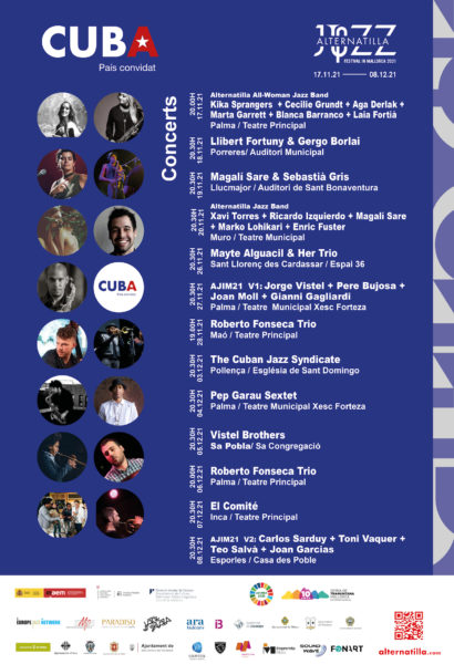 Entre el 17 de noviembre y el 18 de diciembre tendrá lugar Alternatilla Jazz 2021. Festival In Mallorca 2021. Entre otros, actuarán en distintas localidades, Alternatilla All-Woman Jazz Band, Llibert Fortuny, Magalí Sare, Sebastià Gris, Mayte Alguacil, Jorge Vistel, Pere Bujosa, Roberto Fonseca, Pep Garau, Vistel Brothers, Toni Vaquer, entre otros. Toda la información y las entradas están disponibles en https://www.alternatilla.com/