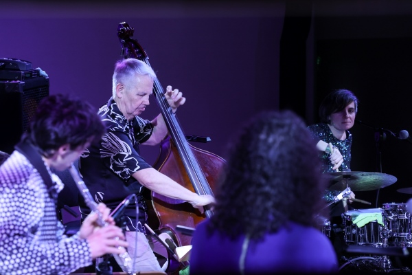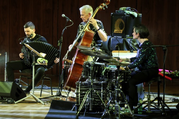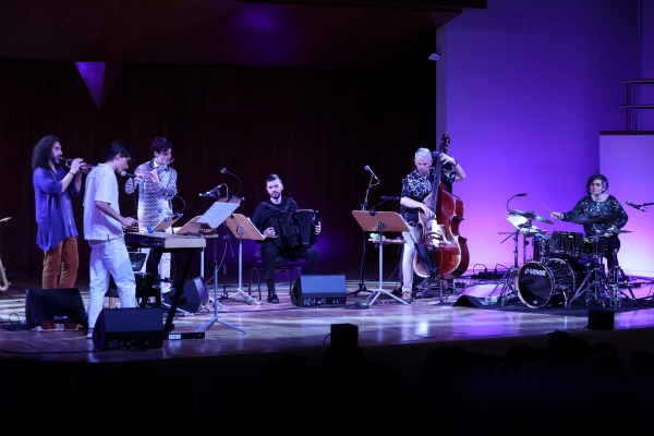 En “Música Imaginaria” pudimos disfrutar de las virtudes de Juan Saiz a la flauta travesera con un solo sin acompañamiento en la línea de flautistas como Paul Horn o James Newton, la trompeta libre y espacial de Julián Sánchez, el intenso acordeón de João Barradas con el omnipresente bajo de Baldo Martínez y ese danzar, más que percutir, sobre platos y tambores de Lucía Martínez.