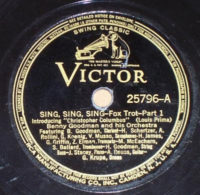 - «Sing, Sing, Sing» por Benny Goodman lo publicó el sello Victor en un 78 RPM, en el que debido a las condiciones técnicas de la época y a su duración de más de ocho minutos, ocupó las dos caras de ese 12″.