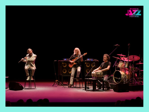 Con el tema “La leyenda”, dieron la entrada a la sesión. Una extensa bulería, en la que sonaron varias citas melódicas con las que recordaron a grandes figuras del jazz y el flamenco, como John Coltrane, Paco de Lucía, Camarón y Chick Corea. En la pieza hubo momentos intensos y otros relajados, en los que alternaron solos de flauta, bajo y batería, creando un ambiente musical apasionante. El concierto continuó con dos piezas en solitario: una de Benavent con el titulo de “Madrid”, y otra de Di Geraldo, realizada con la tabla india, para continuar con una interpretación de Jorge Pardo, arropado de nuevo por sus compañeros, basada en varios temas propios, “Zapatito”, y adaptaciones sobre algunos fragmentos de temas clásicos como “La danza del fuego” de Falla. La interacción entre los músicos está llena de complicidad, el groove es poderoso, y la música fluye con libertad, inmersos en una continua aventura musical abierta a la imaginación, que transmite paisajes sonoros de ensueño. Pardo, Benavent, y Di Geraldo, tuvieron sus incursiones mágicas en solitario, durante toda la actuación. Otros de los temas incluidos en el repertorio fueron “Movidón en Miranda”, “Soleá+Bulería”, y un bis, basado en el tema “Soy Gitano” dedicado a Camarón, que invitaron a corear a un público ya rendido a la actuación.