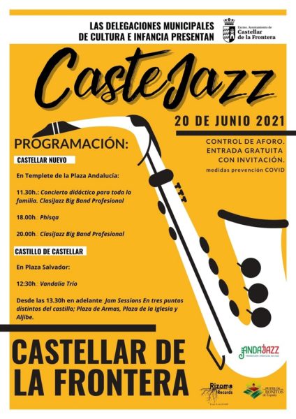 Organizado por asociación Rizoma Records y patrocinado por las delegaciones de Cultura e Infancia del Ayuntamiento de Castellar y la colaboración de Andajazz, la Federación de Asociaciones de Jazz de Andalucía, se va a celebrar este 20 de junio el Festival de Jazz de Castellar de la Frontera, Castejazz. Los conciertos se reparten entre Castellar Nuevo y el Castillo, desde las 11,30 hs hasta bien entrada la noche: Clasijazz Big Band, Phisqa y Vandalia.