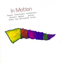 César Joaniquet: In Motion es un proyecto a trío, y sus miembros son: Kasper Agnas de Suecia a la guitarra, Timo van Ruiswijk los Países Bajos a la batería y yo al saxofón. Este trío es una prueba de que la música en Europa cruza fronteras cada vez más en el sentido más literal de la expresión. Los tres pasamos un semestre estudiando en la Academia Real de Música de Estocolmo hace ya dos años. Tocamos con muchos de los músicos de la ciudad pero entre nosotros tres hubo siempre una conexión muy agradable. Así que empezamos a establecer más sesiones con este trío hasta que ya contábamos con un amplio repertorio original. El semestre culminó con una actuación en uno de los festivales más importantes de la ciudad llamado New Sound Made y, después de la buena respuesta que tuvo el público, decidimos grabar éste álbum. No es la instrumentación más común para una banda, debido a que no contiene un instrumento esencial como lo es el bajo. Esta falta de grosor que proporciona el bajo nos da una gran cantidad de espacio para desarrollar las composiciones. La música que interpretamos son temas propios escritos especialmente para esta formación y están basados principalmente en pura improvisación.