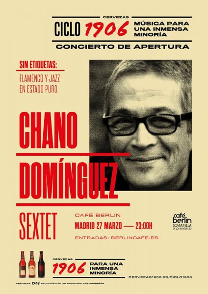 “Música para una inmensa minoría”, titula el anuncio del espectáculo. Chano Domínguez vuelve al Café Berlín. Trae consigo el uniforme de los domingos. El sexteto de las grandes ocasiones. La propuesta es ya conocida. Siempre bien recibida. El pianista ofrece un recital de casta flamenca y chispa latina. Gran notoriedad internacional lo precede. Amén de un rincón vitalicio en el Olimpo del jazz español. Atrás queda el recuerdo del documental Calle 54. Música de una España que permitía fumar en los bares. Música para una inmensa mayoría.