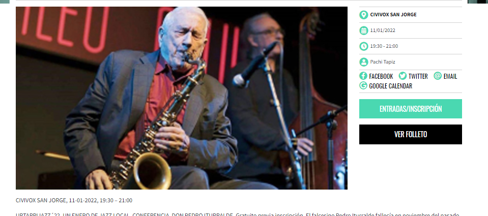 ![Charla "Don Pedro Iturralde" (11 de enero de 2022. Urtarrijazz '22, Civivox San Jorge, Pamplona) [Noticias de Jazz] 1 Tomajazz Charla "Don Pedro Iturralde" (11 de enero de 2022. Urtarrijazz '22, Civivox San Jorge, Pamplona) [Noticias de Jazz] Charla "Don Pedro Iturralde" (11 de enero de 2022. Urtarrijazz '22, Civivox San Jorge, Pamplona) [Noticias de Jazz]](https://tomajazz.com/web/wp-content/uploads/2022/01/Urtarrijazz-2022-Charla-Don-Pedro-Iturralde_PamplonaEsCultural-959x425.png)
