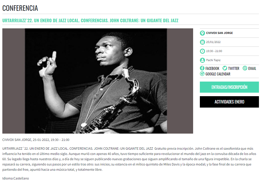 ![Charla "John Coltrane: un gigante del jazz" (25 de enero de 2022. Urtarrijazz '22, Civivox San Jorge, Pamplona) [Noticias de Jazz] 2 Tomajazz Charla "John Coltrane: un gigante del jazz" (25 de enero de 2022. Urtarrijazz '22, Civivox San Jorge, Pamplona) [Noticias de Jazz] Charla "John Coltrane: un gigante del jazz" (25 de enero de 2022. Urtarrijazz '22, Civivox San Jorge, Pamplona) [Noticias de Jazz]](https://tomajazz.com/web/wp-content/uploads/2022/01/Urtarrijazz-2022-Charla-John-Coltrane-Un-gigante-del-jazz.png)