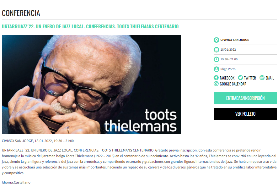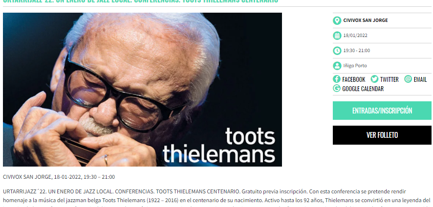 ![Conferencia "Toots Thielemans Centenario" (18 de enero de 2022. Urtarrijazz '22, Civivox San Jorge, Pamplona) [Noticias de Jazz] 2 Tomajazz Conferencia "Toots Thielemans Centenario" (18 de enero de 2022. Urtarrijazz '22, Civivox San Jorge, Pamplona) [Noticias de Jazz] Conferencia "Toots Thielemans Centenario" (18 de enero de 2022. Urtarrijazz '22, Civivox San Jorge, Pamplona) [Noticias de Jazz]](https://tomajazz.com/web/wp-content/uploads/2022/01/Urtarrijazz-2022-Conferencia-Toots-Thielemans.png)