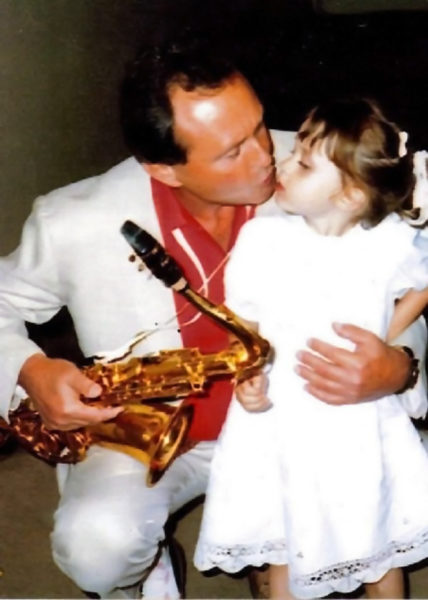 Stan Getz junto a su nieta en el backstage del Lincoln Center, NYC, en junio de 1987