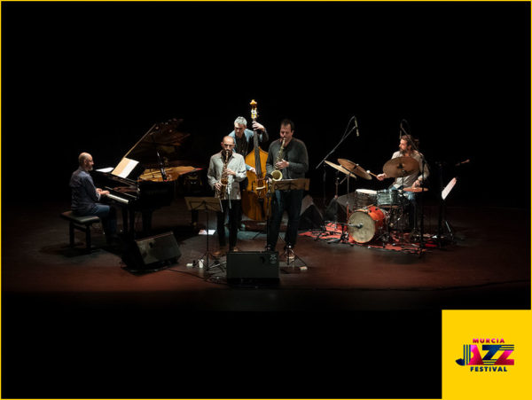 El encargado del sonido, el espacio y la buena acústica del pequeño teatro fueron factores importantes en el resultado de la sesión, que continuó con la melancólica balada “We’ll Be Together Again” (Carl T. Fischer / Frankie Laine) en la que brillaron los arreglos de piano y un magistral solo del contrabajista, que realizó una labor encomiable a lo largo de toda la actuación. Bermejo, Saldaña y Oliver, tuvieron también aquí sus espacios para los solos, con sugerentes y delicados fraseos. Otro de los temas más lucidos del repertorio fue “Leonard”, Home Tone (SKIP Records, 2012) del saxofonista húngaro Tony Lakatos, con alargadas y elegantes improvisaciones de Saldaña, Oliver y Bermejo. El baterista García marcó el inicio de “New York Attitude”, New York Attitude (Uptown, 1984) del pianista Kenny Barron, a un tempo rápido, no apto para cardiacos… El primero en arrancar fue Oliver, acometiendo su solo con una flexibilidad técnica arrolladora, y un discurso decisivo, colmado de largos fraseos enlazados. Saldaña no se quedó corto en su libre improvisación, aportando su personal y exquisita elocuencia creativa. La complicidad de la sección rítmica, abrigando a los vientos en sus respectivas intervenciones, fue decisiva, alcanzando una gran comunicación interactiva dentro del quinteto. Tras las intensidades creadas por los vientos, el pianista Bermejo trazó su improvisación con un rico lenguaje, fresco y ágil en su ejercicio. García cerró las ruedas de solos con una muestra de sus grandes habilidades en la batería. El emotivo bolero “Verdad amarga” de Consuelo Velázquez, cantado por el líder, y la pieza “ET”, decidieron el final de la actuación. En respuesta agradecida por los aplausos del aforo, tocaron un bis, el tema de estilo hard bop “Brilliant Corners”, Brilliant Corners (Riverside Records, 1957) de Thelonious Monk, para acabar con un concierto de gran nivel musical, en el que dejaron buena huella de su paso por el festival.