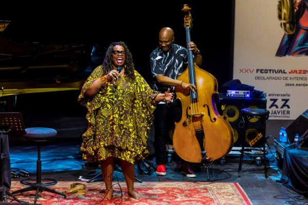 La vocalista norteamericana Dianne Reeves protagonizó el segundo concierto de la noche en el Festival de Jazz San Javier. La diva actual del jazz vocal fue recibida, en su cuarta visita al festival, con una alfombra sobre el escenario, para pisar con sus pies descalzos, y un ramo de flores, no es para menos. Sus más de veinte discos le avalan una magnífica carrera que comenzó a finales de los años 70, consagrándose más tarde como una de las más importantes artistas vocales del jazz, recibiendo algunos premios y reconocimientos a sus trabajos, entre ellos el otorgado en el año 2018, por la agencia independiente National Endowment for The Arts, nombrándole como “Jazz Master”, el más alto honor que reciben los grandes artistas del jazz en Estados Unidos.