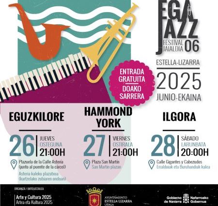Entre el 26 y el 28 de junio de 2025 se celebrará en Estella-Lizarra la sexta edición del EGA Jazz Jaialdia. El festival contará con tres conciertos gratuitos en diferentes espacios de la ciudad.