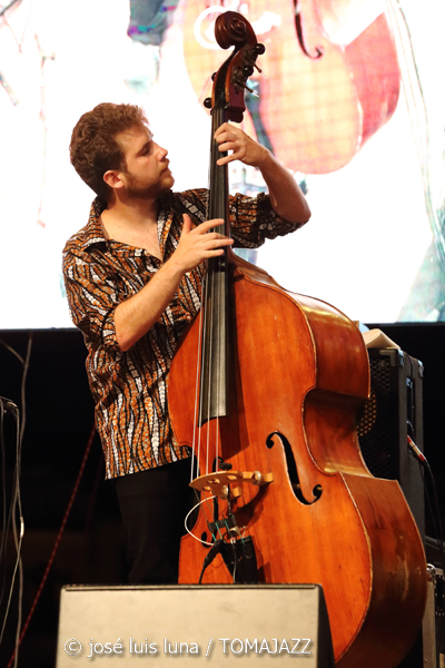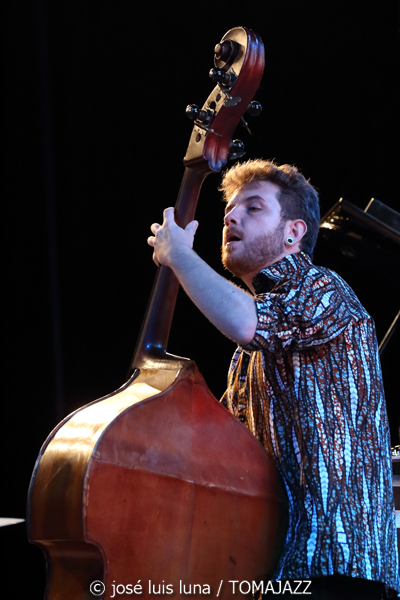 Siguieron con uno de esos temas “Sin Título” que comienza con un solo de contrabajo al que fue añadiendo varios efectos sonoros, para continuar con dos temas enlazados: “Pyramid Song” (Radiohead) con “Zukunft”, del disco de Bujosa y que en alemán significa “mirar hacia el futuro”; este es el tema donde más experimentaron, contrabajo tocado con arco y manipulando los sonidos, casi distorsionando y un tema que sonaba más intenso según lo iban desarrollando.