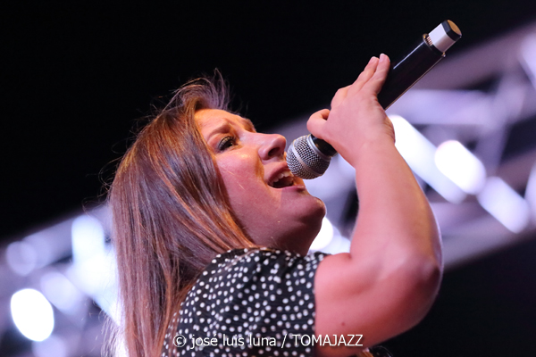 Para calentar motores comenzaron con un instrumental de Mercer Ellington: “Things Ain’t What They Used To Be”, con intervención de los que serían los solistas de la noche, Antonio J. Marín (trompeta), Muriel Grossamnn (saxo tenor), y Natxo Marí (saxo alto); Rafa Garcés también sería solista pero no en este tema. Debut de Miss Aránzazu en “Big Spender”, del musical Sweet Charity. Aránzazu ( o Arancha Fernández) viene del mundo de los coros góspel, ha sido directora del coro ibicenco Gospel Lab y componente del coro radicado en Madrid Gospel Factory; su voz es muy apropiada para estos tipos de música. En “A Nightingale Sang In Barkley Square” turno para el ya conocido Diego Román. Siguieron con un bloque de tres instrumentales: “Just The Two Of Us” (Grover Wahington Jr.), con solos de Muriel Grossmann y Rafa Garcés, aires brasileños en “Dindi”, de A. C. Jobim, y “Montego Bay”, de Bobby Bloom. Vuelta de Miss Aránzazu para cantar el estándar de George Gershwin “Someone To Watch Over Me”, con pequeño fallo de la orquesta en la intro y que obligó a parar para comenzar de nuevo; esta vez se resarcieron acompañando espléndidamente a la buena interpretación de la vocalista, con mucho sentimiento y llevando la voz a alturas notables.