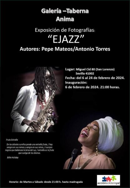 Entre el 6 y el 24 de febrero de 2024 tendrá lugar la exposición de fotografía EJAZZ en Galería – Taberna Ánima de Sevilla.