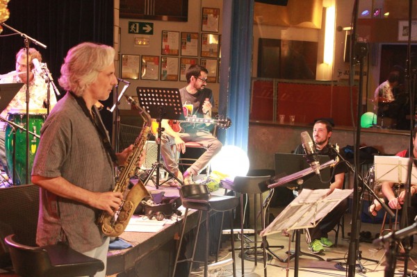 Me gusta el cartel, va con la personalidad de Aurignac. La plasticidad en collage dinámica y viajera realizada por Arkaitz del Río -imagen de cabecera de este artículo- sirve para visualizar los sonidos que contiene esta ambiciosa propuesta. Es un lienzo que evoca a otros conglomerados artísticos de la música popular de los Beatles en Sgt. Peppers, de Frank Zappa en Grand Wazoo pero sobre todo el empuje aéreo de la portada de Miles Davis en Bitches Brew. En suma, Ernesto Aurignac indaga en los recursos de un concepto aglutinador por medio de una verdadera orquesta, no big band. El saxofonista ama por igual a Parker como a Ornette Coleman, quizá más al primero. Ama los standards, ama el bolero, le gusta la melodía y volar alto o raso, rápido o lento sobre ella. Flamenco, blues, bolero, bebop, UNO es un puzzle de las corrientes principales del jazz traídas por el músico andaluz hasta el presente con sumo respeto y emoción. Con un sentimiento profundo y personal que él hace colectivo sumando voluntades. Un montón de voluntades.