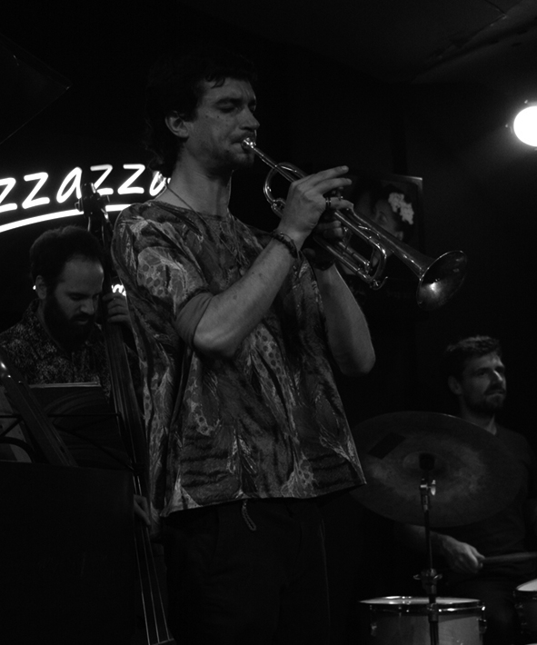 Esperada y grata visita del grupo Félix Rossy Quintet al club Jazzazza. Un gozo poder escuchar, en directo, a esta formación liderada por uno de los trompetistas más prometedores de la escena jazzística de nuestro país, comunicando también su sabiduría y buen hacer más allá de nuestras fronteras. En su primer disco, Introducing Félix Rossy (Fresh Sound New Talent, 2011) estuvo rodeado de figuras de talla internacional: el pianista Michael Kanan, Ben Street al contrabajo, y su padre Jorge Rossy en la batería, mostrándonos, ya en aquel tiempo, sus extraordinarias capacidades musicales y de liderazgo. Con este nuevo quinteto, acompañado de excelentes músicos como el trombonista Tomeu Garcias, el pianista Davis Whitfield, Manel Fortià al contrabajo, y Marc Michel en la batería, Rossy ofreció un repertorio muy atractivo y variado, en el que la calidad de los interpretes estuvo a la altura de los más grandes músicos de jazz.