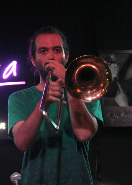 El primer set del concierto lo iniciaron con “Sweet And Lovely” de Gus Arnheim, Charles N. Daniels y Harry Tobias. Un tema lento en la exposición que cambiaron a ritmo de swing en el desarrollo de los solos, protagonizados por Rossy, Garcias y Whitfield. La sesión continuó con una pieza original del contrabajista Manel Fortià, “Waltz For Greta”, en la que lucieron las elegantes improvisaciones del pianista, seguido de Rossy, y del contrabajista, arropado por los precisos toques del baterista Marc Michel y los sutiles acordes de Whitfield. Rossy eligió después una pieza de su propia cosecha titulada “Looking The Surroundings”, cargada de una atmósfera de energía contenida, destacando los fraseos del trompetista y del pianista. El tema “Confirmation” de Charlie Parker, puso un toque del estilo bebop a la actuación, para lucimiento, en esta ocasión, del trombonista Tomeu Garcias, una corta intervención de Rossy, y un solo del pianista, más cercano al estilo de jazz mencionado anteriormente. Con la composición “Ugly Beauty” de Thelonious Monk cerraron esta parte de la sesión, repartiendo las improvisaciones entre todos los miembros, a excepción del baterista.