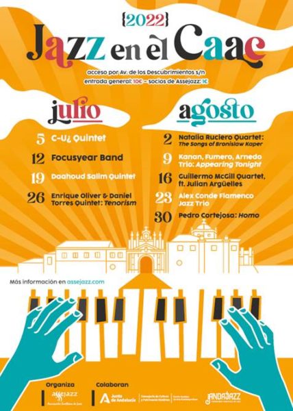 En ciudades con una programación de conciertos de jazz a lo largo del año, como Sevilla, Granada, Almería o Alhaurín de la Torre, cabe destacar los ciclos de conciertos que se desarrollan a lo largo de los meses de verano. Jazz en el CAAC, en el Centro Andaluz de Arte Contemporáneo de Sevilla, del 5 de julio al 30 de agosto, todos los martes por la noche a las 22 hs. Organizados por Assejazz, como todos los años, cuenta con una programación excelente que hace que músicos de la escena local muestren sus nuevos proyectos musicales en alternancia con bandas desconocidas en la ciudad. Podremos escuchar a Natalia Rociero, Guillermo McGill, Julián Argüelles, Pedro Cortejosa, Daahoud Salim. C-U Quintet, Focusyear Band, Enrique Oliver, Kanan-Fumero–Arnedo y Alex Conde. Otro ciclo de jazz que se desarrolla semanalmente es Jazz en la Plaza, entre el 23 de junio y el 28 de julio, cada jueves en la Plaza de las Culturas del Centro Cultural CajaGranada comenzando a las 22:00 horas. En junio ya han tocado Enrique Oliver & Daniel Torres Quintet y Jaco Abel & Amós Lora, en julio lo harán Focusyear Band 22 el Jueves 7, Spiral Trío el 14, Daahoud Salim Quintet el 21 y Juanjo Corbalán Cuarteto el 28 de julio. La programación corre a cargo de la asociación Ool-Ya-Koo. En la misma onda, se celebra en Alhaurín de la Torre (Málaga), El Portón Jazz, que este año celebra su 25 aniversario y como siempre ofrece una programación sobresaliente. Conciertos de Alain Pérez & La Orquesta (8 de julio), Chicuelo & Marco Mezquida (15 de julio), Aaron Goldberg Trío con Michael Mayo (22 de julio), y Hermeto Pascoal & Grupo (29 de julio). Todos serán a las diez de la noche en el auditorio al aire libre de El Portón.