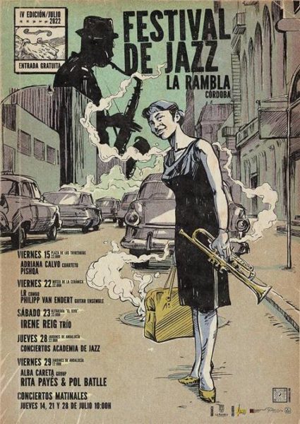 Del 14 al 16 de Julio, en Ronda (Málaga), el Tercer Festival de Jazz de Ronda, Murajazz, en las Murallas del Carmen. Quinteto de Javier Navas, Colossus Jazz y Brainstorming Jazz Quartet. Organizado por el Ayuntamiento y la Asociación Ronda-jazz. Entre el 14 y el 29 de Julio será la IV edición del Festival de Jazz de La Rambla (Córdoba). Conciertos los fines de semana a cargo del Cuarteto de Adriana Calvo, PISHQA, Philipp van Endert Guitar Ensemble, Irene Reig Trio, Alba Careta Group, Rita Payés & Pol Batlle, además de talleres y clases magistrales para músicos y aficionados.