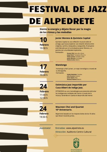 Entre el 10 y el 24 de febrero de 2024 tendrá lugar en Alpedrete (Madrid), el II Festival de Jazz Alpedrete 2024.