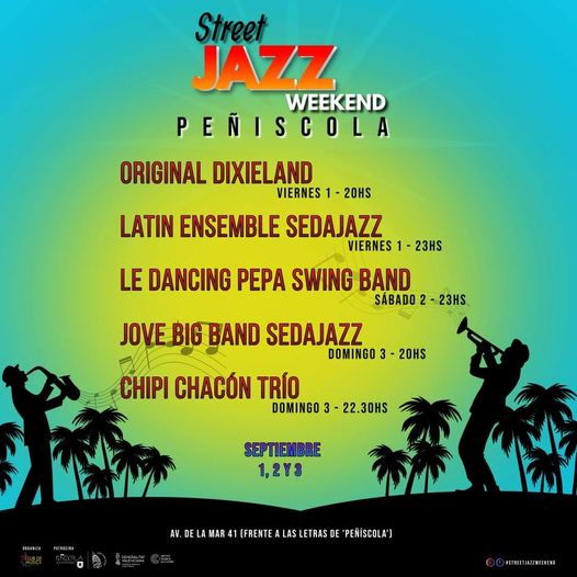 Entre el 1 y el 3 de septiembre de 2023 tendrá lugar en Peñíscola (Castellón), el III Street Jazz Weekend Peñíscola 2023. III Festival Jazz al carrer Peñíscola 2023.