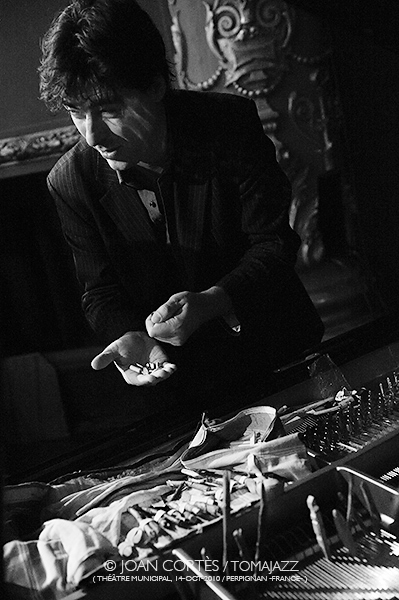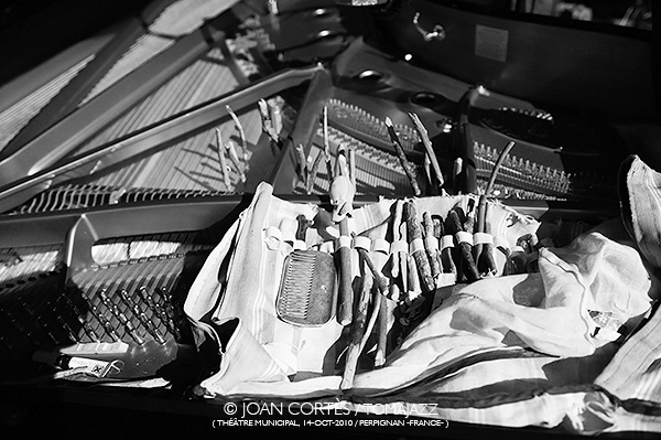 INTERIOR DEL PIANO DE BENOÎT DELBECQ (The sixth jump, trío con Jean-Jacques Avenel et Emile Biayenda / 22ème Jazzèbre / Thèâtre Municipal, Perpignan -France-, 2010)
