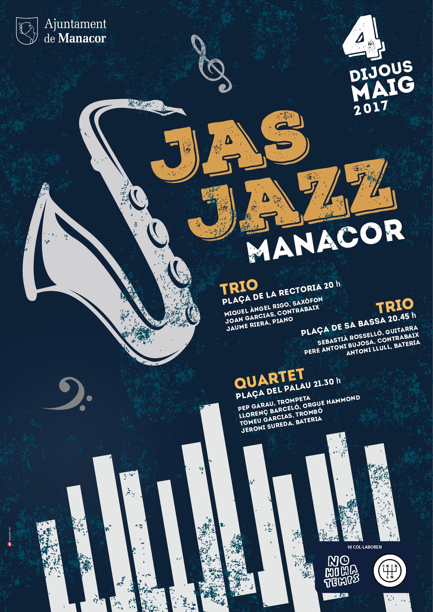 El jueves 4 de mayo de 2017 se celebrará en Manacor la primera edición de Jas Jazz. En la primera edición tendrán lugar tres conciertos en tres puntos del centro de la ciudad, protagonizados por diez jóvenes músicos mallorquines