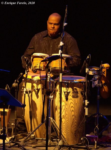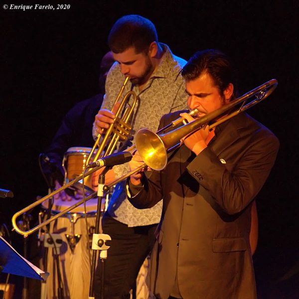 Las siguientes piezas fueron claramente elegidas para el repertorio por Javier Colina. Su amor por la música cubana y latinoamericana en general se puso de manifiesto en el bolero “Juramento” compuesto por Miguel Matamoros, con Perico Sambeat de primera voz al saxo alto y acompañamiento del trombón de Santiago Cañada. A resaltar el solo que hizo Javier Colina marca de la casa, lleno de sentimiento y expresividad. Le siguió un buen solo de trombón, y de nuevo retomando Perico Sambeat como primera voz del tema.