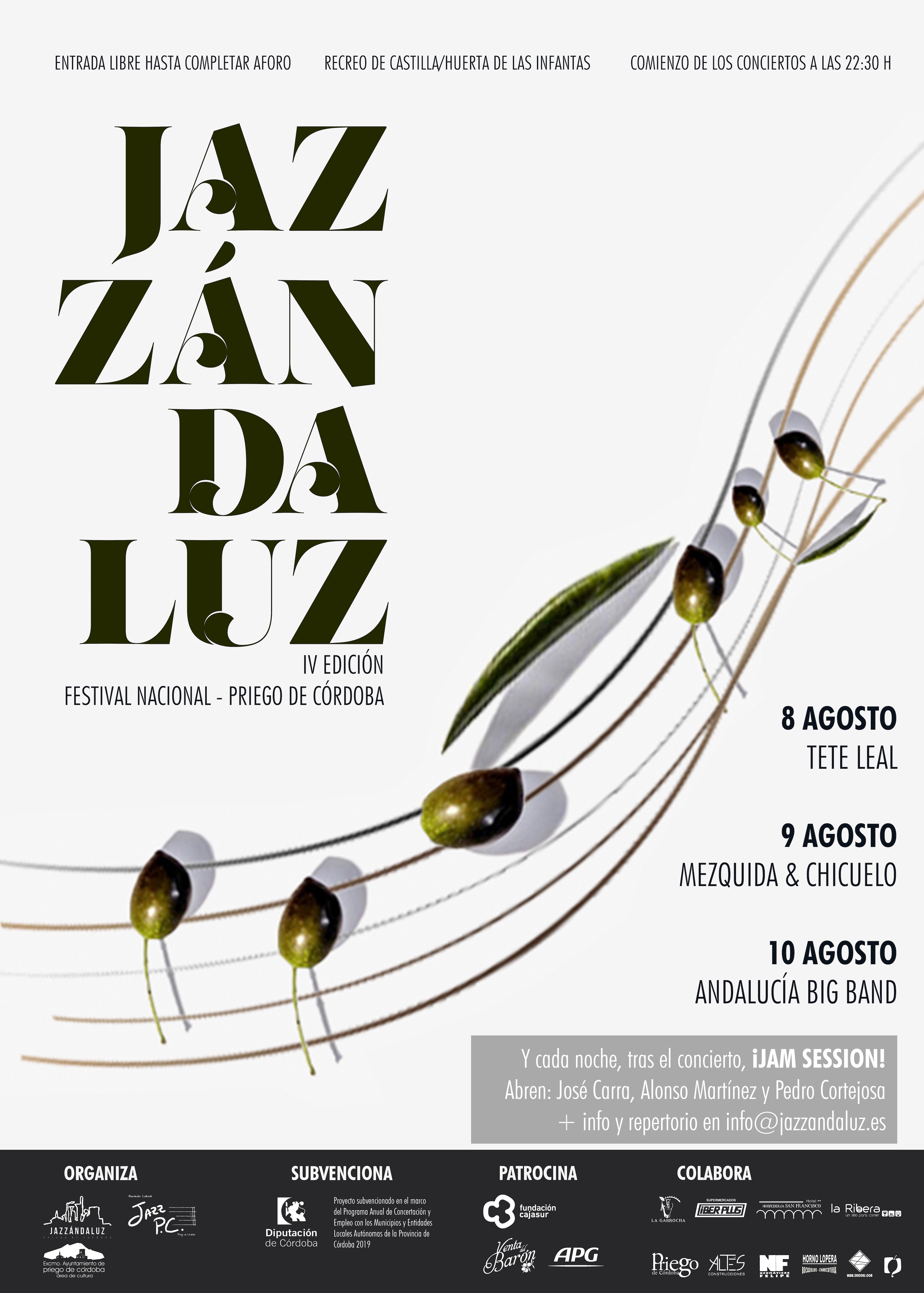 Los próximos días 8, 9 y 10 de agosto de 2019 se celebrará la IV edición del Festival Nacional de Jazz “Jazzándaluz” en Priego de Córdoba.