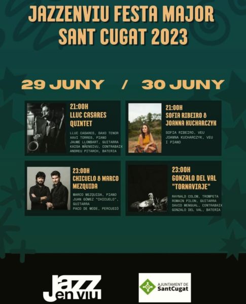 ![Jazzenviu Festa Major Sant Cugat 2023 (San Cugat del Vallés, Barcelona. 29 y 30 de junio de 2023) [Noticias de jazz] Tomajazz 9.0 Jazzenviu Festa Major Sant Cugat 2023 Tomajazz Noticias Jazzenviu Festa Major Sant Cugat 2023 (San Cugat del Vallés, Barcelona. 29 y 30 de junio de 2023) [Noticias de jazz] - Tomajazz 9.0](https://tomajazz.com/web/wp-content/uploads/2023/06/Jazzenviu-Festa-Major-Sant-Cugat-2023-Tomajazz-Noticias-485x600.jpg)