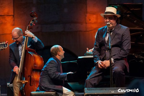 Difícil reto el de afrontar el repertorio de estos dos grandes intérpretes sin que su sombra se cierna sobre el grupo, o tratar de innovar en temas que forman parte de la memoria colectiva de los amantes de la música, pero a pesar de ello y de que los músicos parecían no tener el repertorio completamente armado, el quinteto salió victorioso de la actuación y brillo especialmente en los últimos temas de la noche. No faltaron los clásicos que todo el público esperaba, cantados a dúo en inglés y portugués, desde los iniciales “Água de Beber” (casualmente versionado la noche anterior por Madeleine Peyroux”), “Baubles, Bangles and Beads” o “One Note Samba” (donde Pizzarelli repartía entre los suyos el turno de improvisación), a “Meditação”, “Corcovado”, “I Concentrate On You” escrito en 1940 por Cole Porter para la película Melodía de Broadway o “Bonita” con Daniel Jobim al piano y voz principal. Caben destacar la bella introducción con la guitarra de John Pizzarelli en “The Way You Look Tonight” escrito por Jerome Kern y Dorothy Fields (tema este fuera del repertorio grabado por Jobim) y varias intervenciones del pianista Helio Alves, a mi entender, el más acertado de la noche.