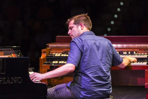 La primera parte de la sesión dio comienzo con “A Hard Rain’s A-Gonna Fall” (Bob Dylan) versionada a la manera de Elling, en la que introdujo sus originales improvisaciones con el scat, dejando el arreglo final de la pieza al baterista Adonis Rose. Tras agradecer la presencia del público, el cantante entonó una preciosa composición llamada “A Happy Thought” de Stuart Mindeman, incluida también en su último disco. El pianista protagonizó aquí su primera incursión, en la parte improvisada del tema, con un elegante solo, arropado por el resto de la banda. La cálida y poderosa voz de Elling recreó con bellos matices la conocida canción “I Have Dreamed” (Rogers y Hammerstein) en la que lucieron los arreglos armónicos del órgano Hammond, y el exquisito solo de guitarra de John McLean. La voz, a modo de scat, y la batería, dieron la introducción de “Samuray Cowboy” (The Gate, 2011) una pieza muy jubilosa, con la participación destacada del contrabajista Clark Sommers, un músico que juega un papel esencial en la formación. Elling, mostró también su faceta latina cantando en español el bolero “Si te contara” (Passion World, 2015) del cubano Félix Reina Altuna, motivando el delirio de los presentes. Otra de las piezas más interesantes fue la adaptación “A Secret In Three Views” del tema original instrumental “Three Views Of A Secret “, de Jaco Pastorius, que el pianista, Mindeman, supo magnificar con una larga y enérgica improvisación de órgano.