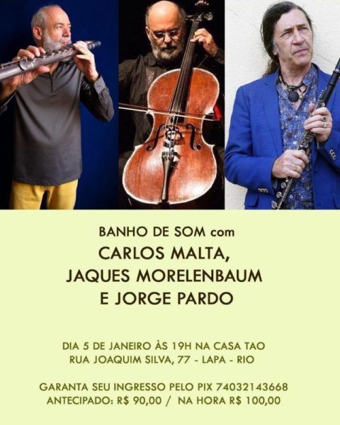 Hoy Jorge debería estar horneándose al sol de Copacabana, quien sabe si bebiendo una caipiriña de lima rodeado por un ejército de vestales con la falda corta y la mano larga. Sucede que, para el artista, como para el ingeniero, caminos, canales y puertos, lo primero es la obligación y luego, el despiporre. Y es por eso que esta aquí, en el barrio de Lapa, corazón del malevaje carioca, poniendo a prueba el repertorio que va a interpretar esta noche junto a sus dos nuevos viejos amigos, con quienes va a compartir escenario y bocadillo de atún. Carlos Malta, por el lado de las flautas y los clarinetes, y Jaques Morelenbaum, alternando el violonchelo con la botella de agua Minalba, nacida a 1.700 metros de altitud en la ciudad de Campos do Jordão, estado de São Paulo .