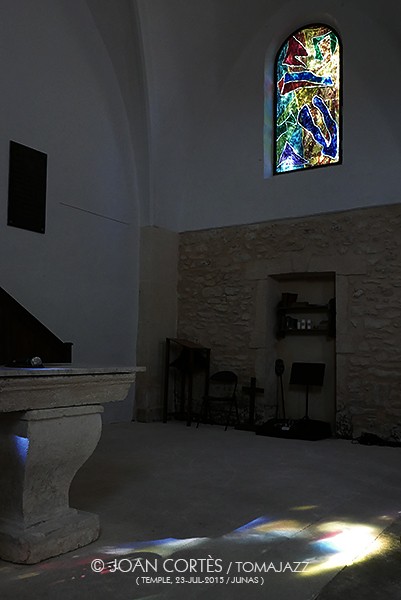 Después del festival fotográfico, y sin pausa, pasamos al festival de Jazz de la pequeña población de Junas (de unos mil habitantes). En esta edición, la organización presentó una nueva selección de fotografías de gran formato, en b/n, expuestas en dos calles y en el interior del Temple (de confesión protestante). Quince fotografías correspondientes a músicos que han participado en distintas ediciones del festival.