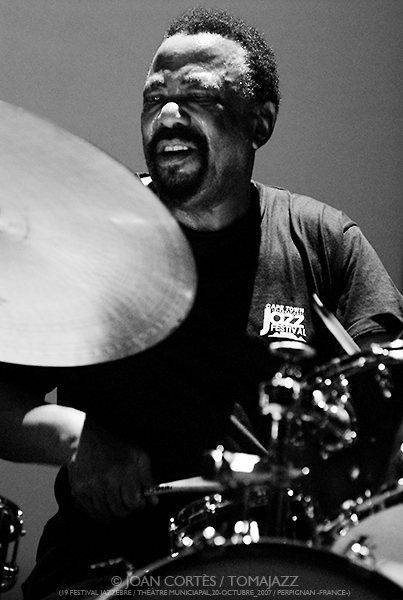 Cita tomada de la entrevista a Louis Moholo en Misterioso, Apropos of Creative Music realizada por Laurence Svirchev en 2005 y publicada en la web en 2011. Fotografía de Joan Cortès tomada en la actuación de Louis Moholo – Canto General, el 20 de octubre de 2007 en el 19ème Festival Jazzèbre, en el Théâtre Municipal de Perpignan (Francia).