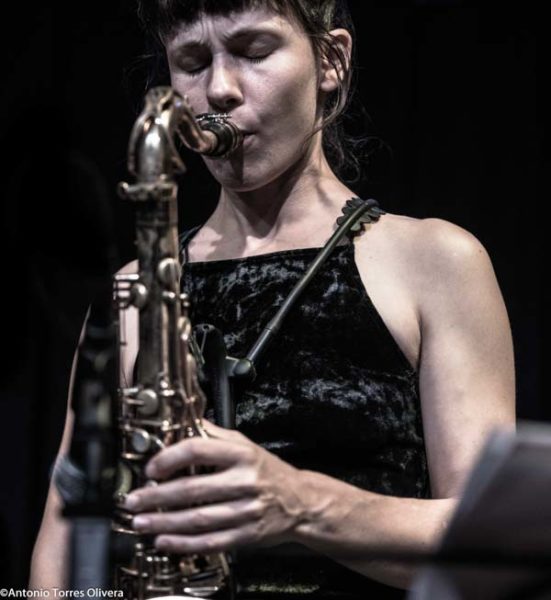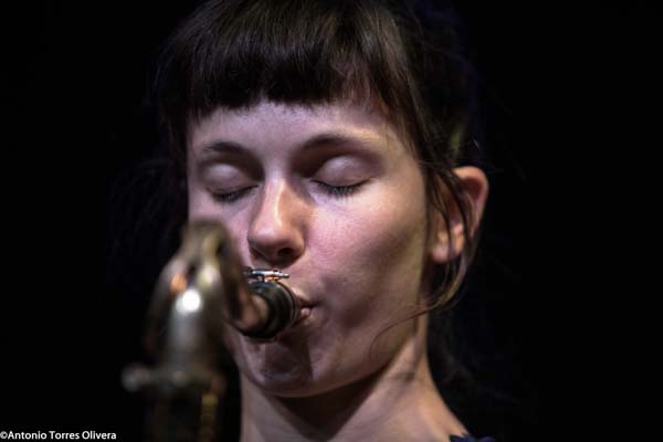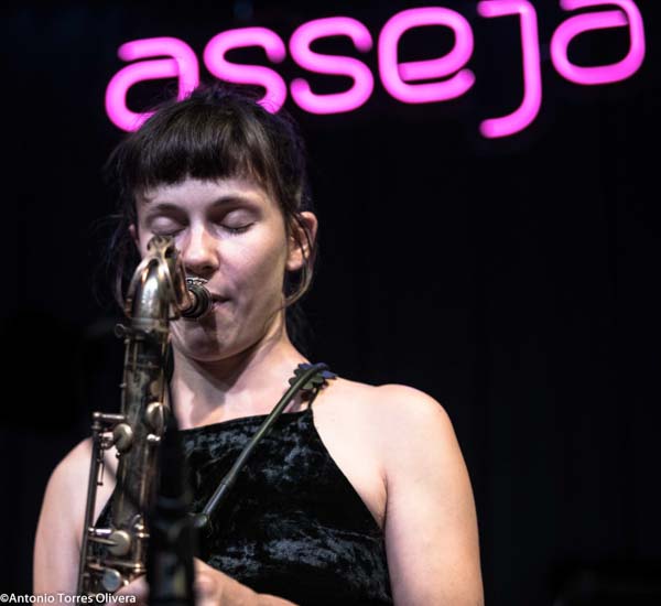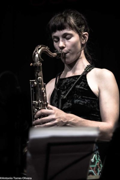 Especial relevancia han tenido los conciertos celebrados en la Sede de ASSEJAZZ con programa doble durante los dos primeros días del festival. En esta reseña hago referencia al concierto ofrecido por la saxofonista María Grand y la pianista Marta Sánchez ambas residentes en Nueva York desde hace unos años donde tienen una actividad creciente liderando grupos y proyectos y formando parte de la punta de lanza de lo que ahora mismo se mueve alrededor del jazz en la capital neoyorkina. Las dos artistas vinieron a Sevilla presentando un proyecto personal de la saxofonista María Grand, un proyecto intimista, como ella misma declara, muy vulnerable y que yo añadiría, incluso de cierto riesgo, al moverse sobre unas claves muy personales de María. El proyecto de nombre “Anohin” que se plasmará en un disco que saldrá en marzo publicada por un sello neoyorquino, trata de transmitir una música intima nacida de las emociones y que forma parte del proceso de sanación de la propia María Grand, música llena de matices e imperfecciones no evitadas, en cualquier caso, música que demuestra la solvencia técnica de ambas intérpretes y su búsqueda de nuevos espacios y modos de expresión.