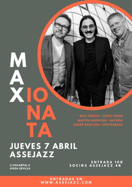 El jueves 7 de abril de 2022, concierto de Max Ionata en Assejazz. El saxofonista actuará acompañado de Martin Andersen (batería), y Jesper Bodilsen (contrabajo).