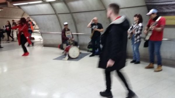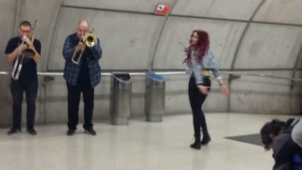 Bryan y Laura respiran hondo y comienzan a bailar. Con suavidad al principio, porque les cuesta un poco «entrar en calor». Pero no tardan en olvidarse del público, de los viajeros que van y vienen a su alrededor, y comienzan a moverse con más ritmo y energía. Una estación de metro no es el primer lugar en el que uno pensaría para arrancarse a bailar, pero si la música es buena, cualquier lugar es apropiado.