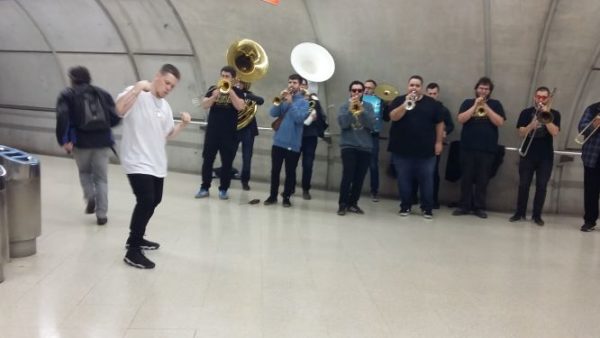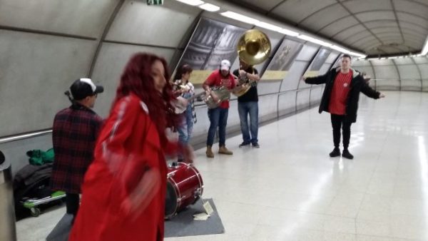 Todo se lo debemos a que Metro Bilbao está de aniversario. Son 25 años ya, llevando y trayendo pasajeros a través del subsuelo de la capital. Y qué mejor manera de celebrarlo que metiendo en los túneles de hormigón a tres grupos, Lucky Chops (New York City), Crazy Jazzers (Bilbao) y Broken Brothers Brass Band (Pamplona) para que los metales de sus instrumentos rivalicen con el rugido de los trenes, ante la sorpresa de quienes utilizan habitualmente el transporte público.