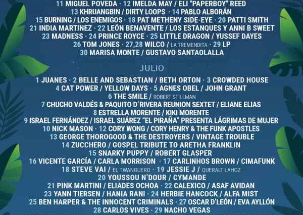 En la parte de jazz de la programación tendrán lugar la actuación de Pat Metheny, Chucho Valdés – Paquito D’Rivera Reunion Sextet, Eliane Elias, Snarky Puppy, Robert Glasper y Herbie Hancock. Diana Krall actuará en la jornada de clausura.
